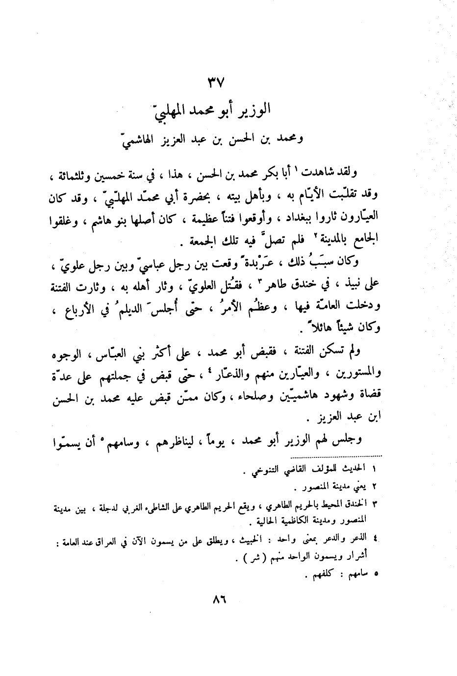 37 الوزير أبو محمد المهلبيّ ومحمد بن الحسن بن عبد العزيز الهاشميّ