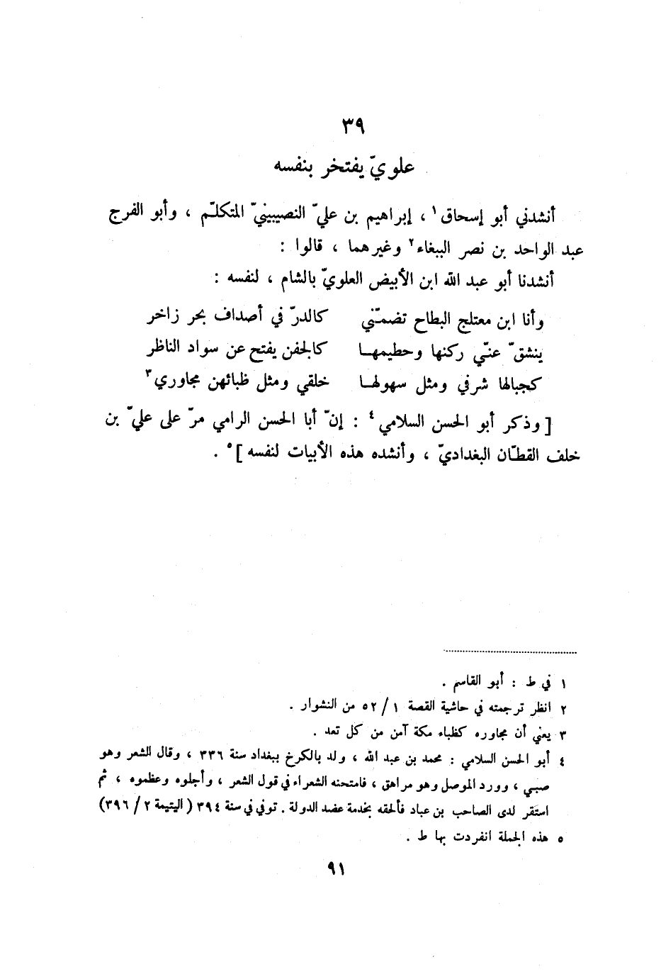 أنشدني أبو إسحاق «1» ، إبراهيم بن عليّ النصيبينيّ المتكلّم، وأبو الفرج عبد الواحد بن نصر الببغاء «2» وغيرهما، قالوا: