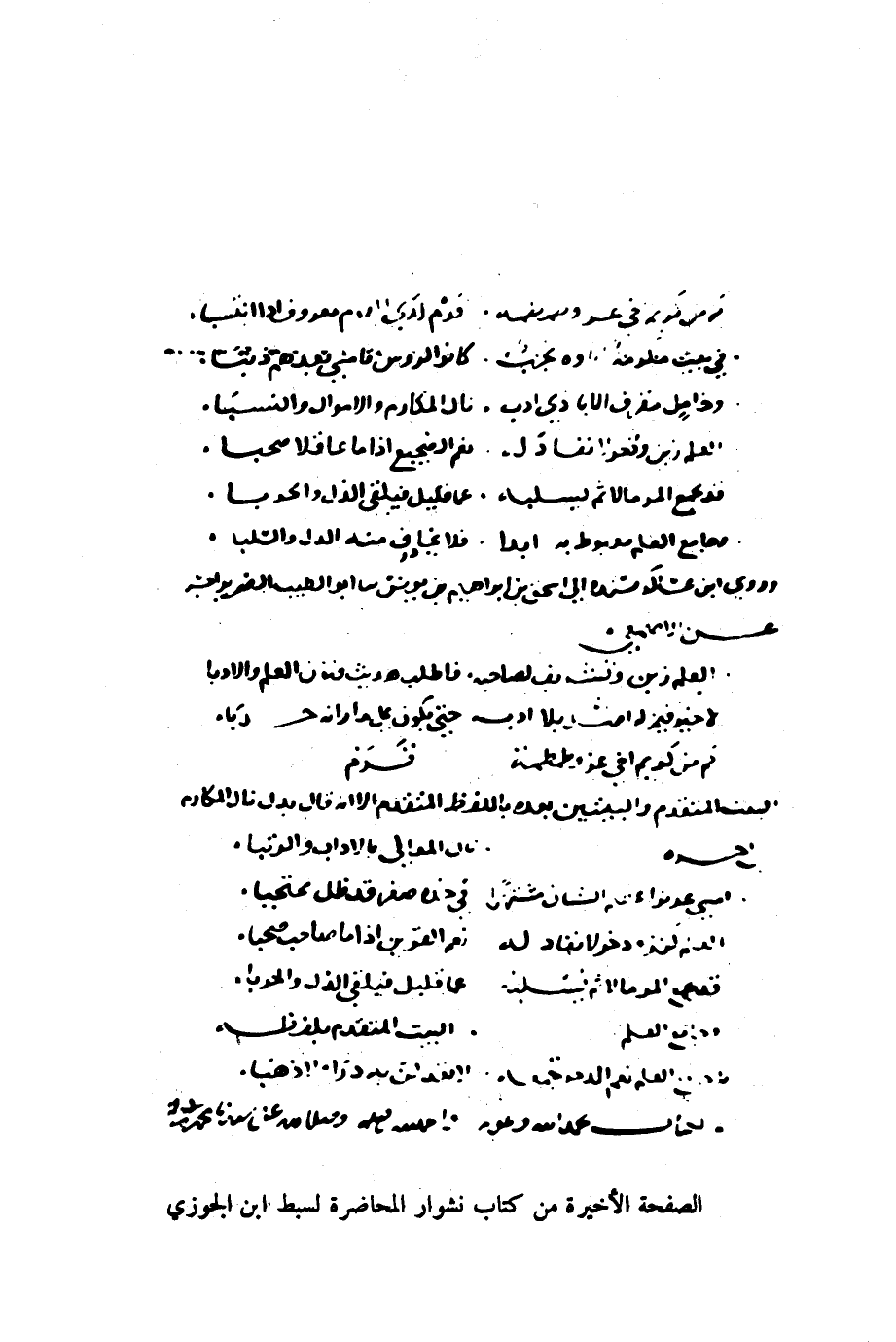 أبي القاسم والده، وإنّ بعض العوائق حالت بينه وبين تحصيله، فاشتدّ أسفه عليه «1» . ونحن نشارك أبا نصر، في أسفه، فإن ديوان التنوخيّ، معتبر الآن، في جملة الدواوين الضائعة.