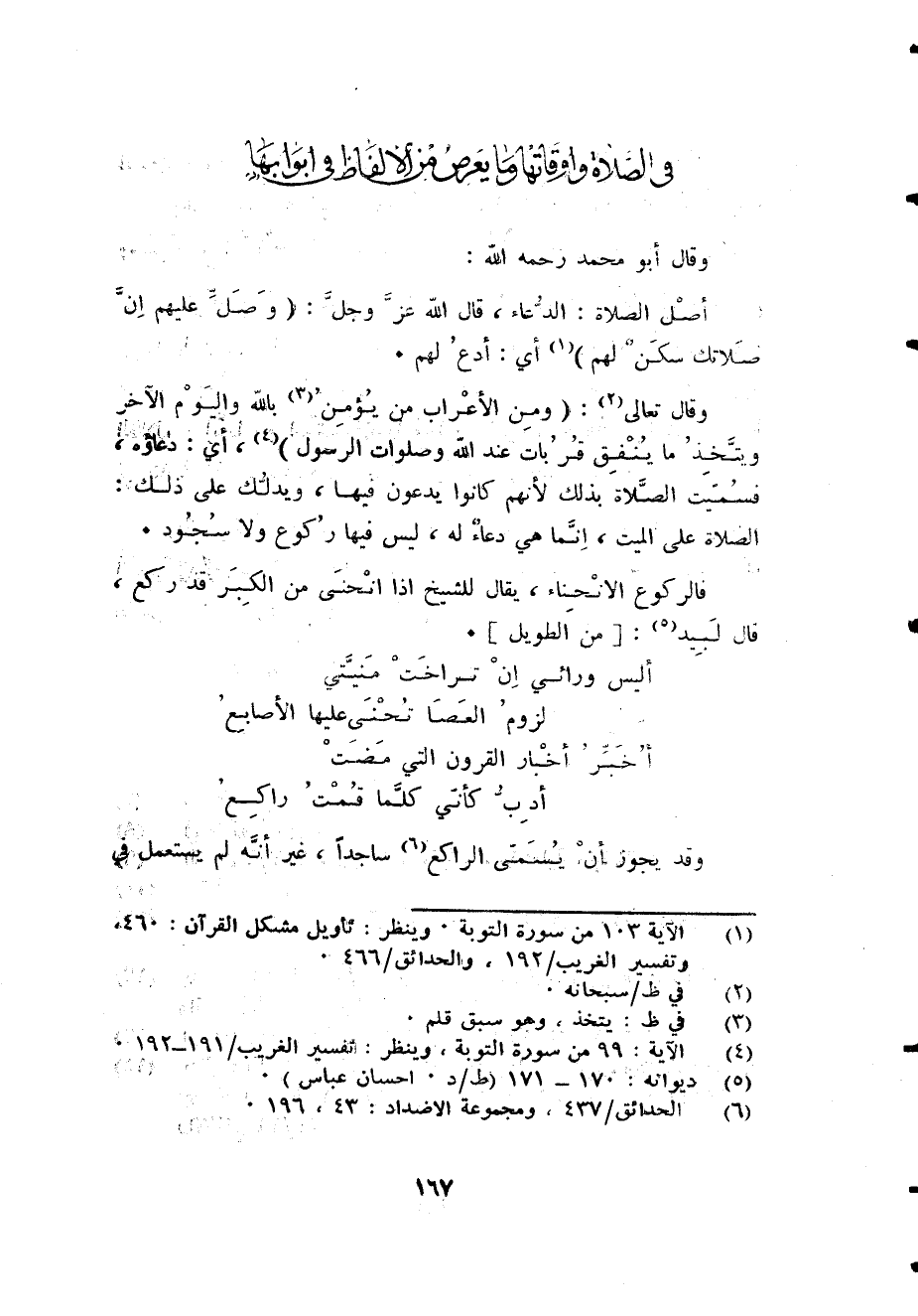 فِي الصَّلَاة وأوقاتها وَمَا يعرض من الْأَلْفَاظ فِي أَبْوَابهَا وَقَالَ أَبُو مُحَمَّد رَحمَه الله