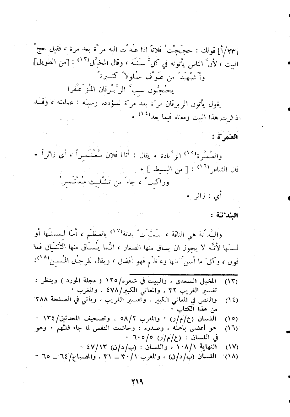 وَالْعمْرَة الزِّيَادَة يُقَال أَتَانَا فلَان مُعْتَمِرًا أَي زَائِرًا قَالَ الشَّاعِر [من الْبَسِيط] ... وراكب جَاءَ من تثليث مُعْتَمر ...