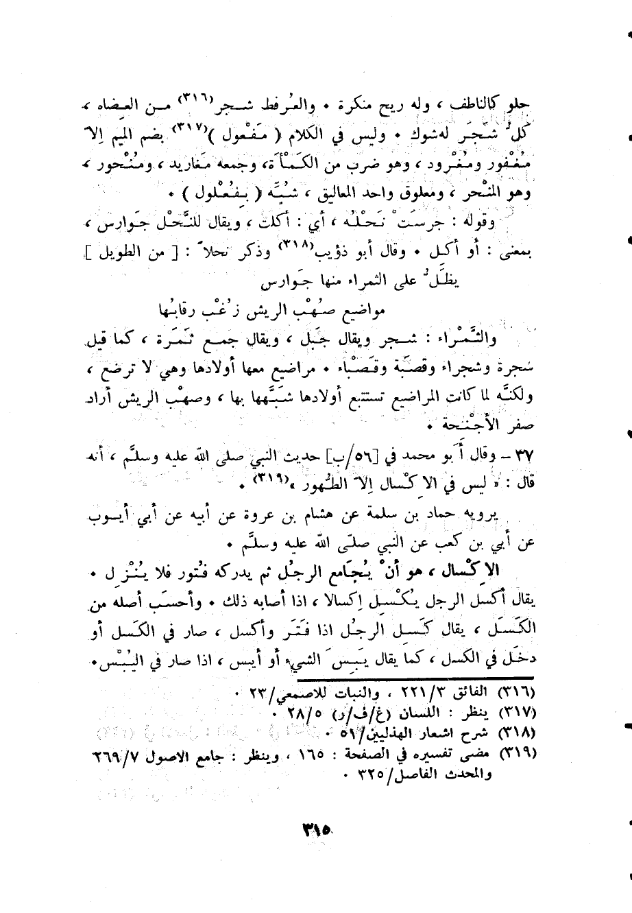 حُلْو كالناطف وَله ريح مُنكرَة والعرفط شجر من العضاه كل شجر لَهُ شوك وَلَيْسَ فِي الْكَلَام مفعول بِضَم الْمِيم الا مغْفُور ومغرود وَهُوَ ضرب من الكمأة وَجمعه مغاريد ومنحور وَهُوَ المنحر ومعلوق وَاحِد المعاليق شبه بفعلول.