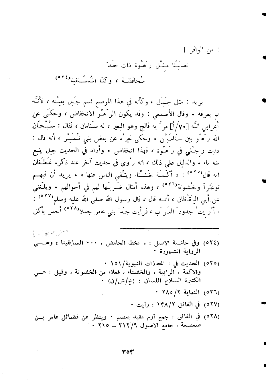 من الوافر ... نصبنا مثل رهوة ذَات حد ... مُحَافظَة وَكُنَّا المسنفينا ...