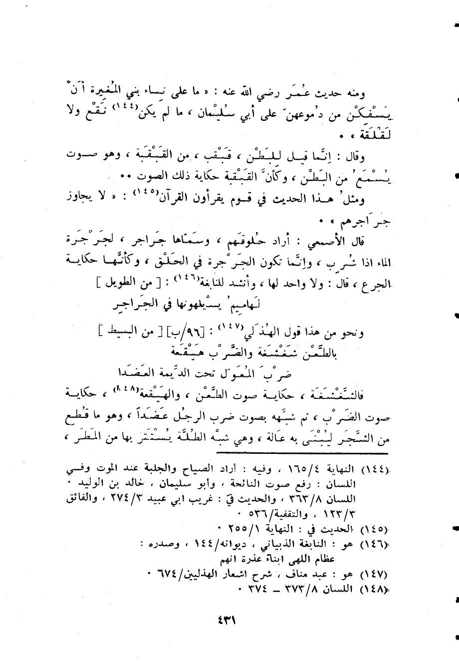 قَالَ الْأَصْمَعِي أَرَادَ حُلُوقهمْ وسماهاه جراجر لجرجرة المَاء إِذا شرب وَإِنَّمَا تكون الجرجرة فِي الْحلق وَكَأَنَّهَا حِكَايَة الجرع قَالَ وَلَا وَاحِد لَهَا وَأنْشد للنابغة [من الطَّوِيل] ... لهاميم يسيلهونها فِي الجراجر ...