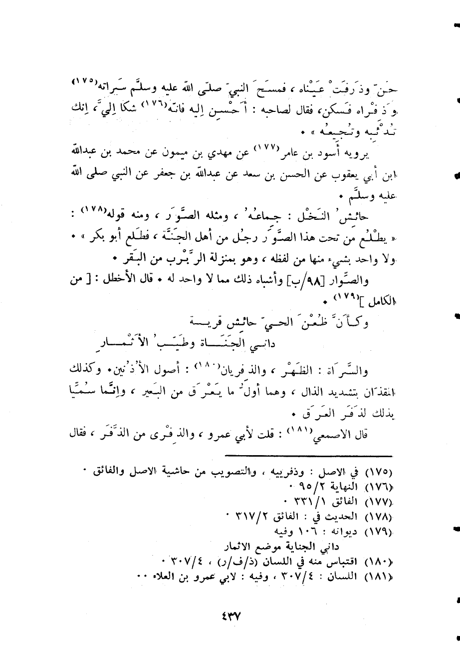 والضوار وَأَشْبَاه ذَلِك مِمَّا لَا وَاحِد لَهُ قَالَ الأخطل [من الْكَامِل] ... وَكَأن ظعن الْحَيّ حائش قَرْيَة ... داني الجناة وَطيب الأثمار ...