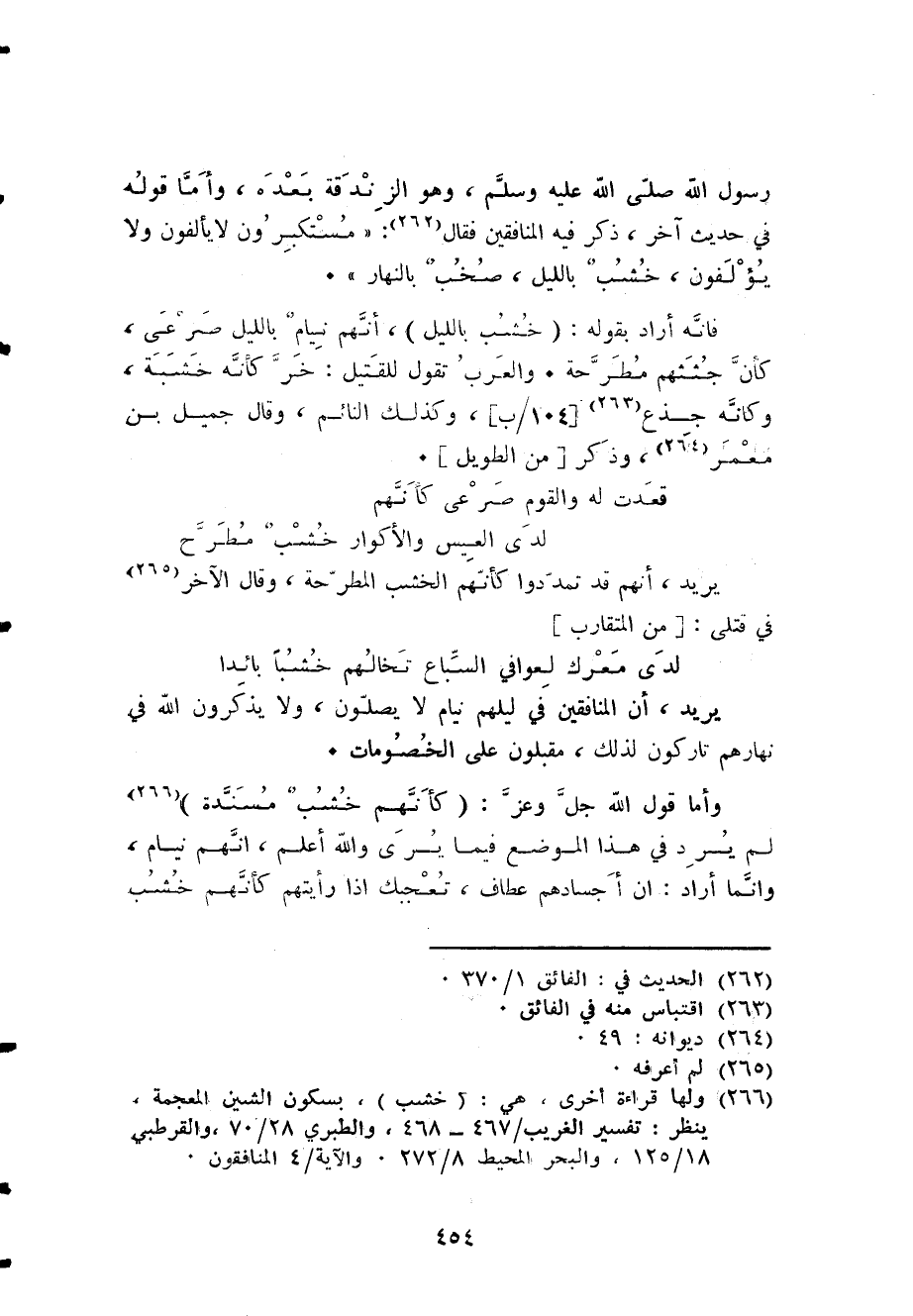 وَأما قَول الله جلّ وَعز {كَأَنَّهُمْ خشب مُسندَة} لم يرد فِي هَذَا الْموضع فِيمَا يرى وَالله أعلم أَنهم نيام وَإِنَّمَا أَرَادَ أَن أَجْسَادهم عطاف تعجبك إِذا رَأَيْتهمْ كَأَنَّهُمْ خشب