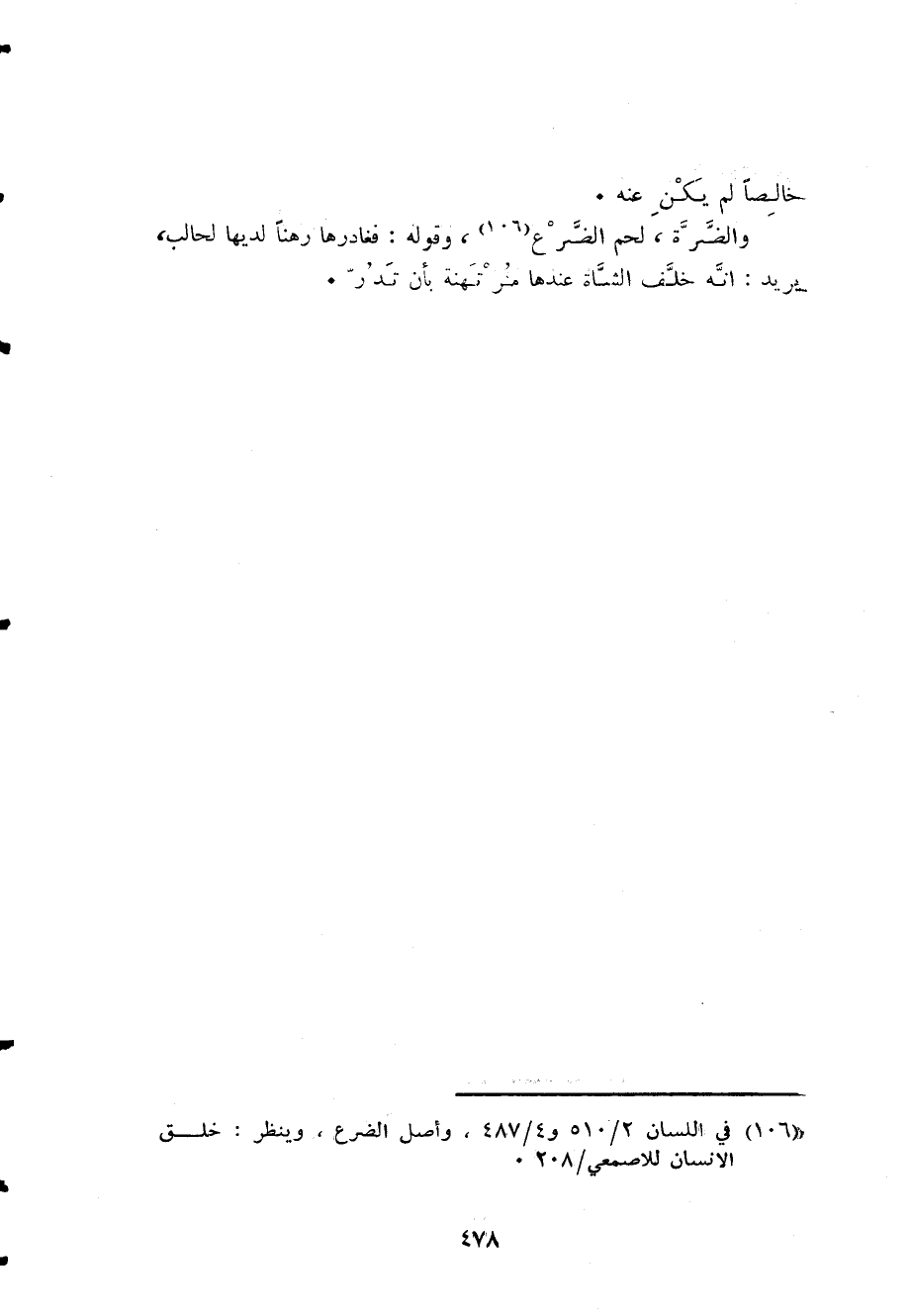 والضرة لحم الضَّرع وَقَوله فغادرها رهنا لَدَيْهَا لحالب يُرِيد أَنه خلف الشَّاة عِنْدهَا مرتهنة بِأَن تدر