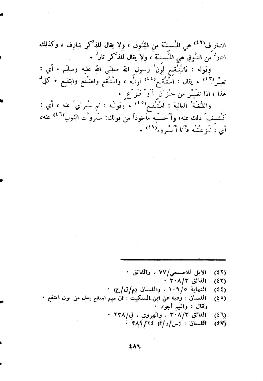 وَقَوله فانتقع لون رَسُول الله صلى الله عَلَيْهِ وَسلم أَي تغير يُقَال امتقع لَونه وانتقع واهتقع وابتقع كل هَذَا اذا تغير من حزن أَو فزع.