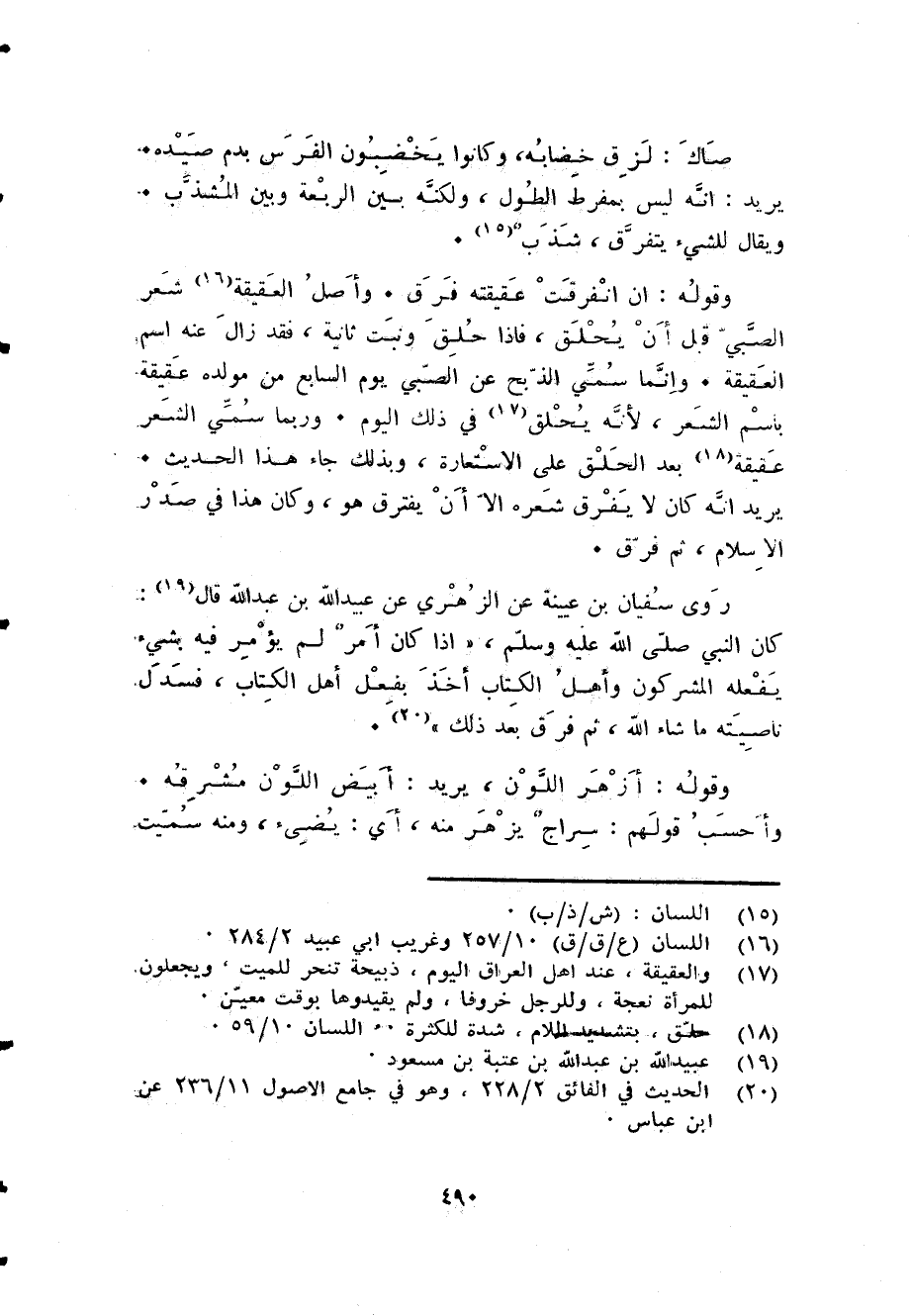 وَقَوله ان انفرقت عقيقته فرق وأصل الْعَقِيقَة شعر الصَّبِي قبل أَن يحلق فَإِذا حلق وَنبت ثَانِيَة فقد زَالَ عَنهُ اسْم الْعَقِيقَة وَإِنَّمَا سمي الذّبْح عَن الصَّبِي يَوْم السَّابِع من مولده عقيقة باسم الشّعْر لِأَنَّهُ يحلق فِي ذَلِك الْيَوْم وَرُبمَا سمي الشّعْر عقيقة بعد الْحلق على الِاسْتِعَارَة وَبِذَلِك جَاءَ هَذَا الحَدِيث يُرِيد أَنه كَانَ لَا يفرق شعره إِلَّا أَن يفْتَرق هُوَ وَكَانَ هَذَا فِي صدر الْإِسْلَام ثمَّ فرق