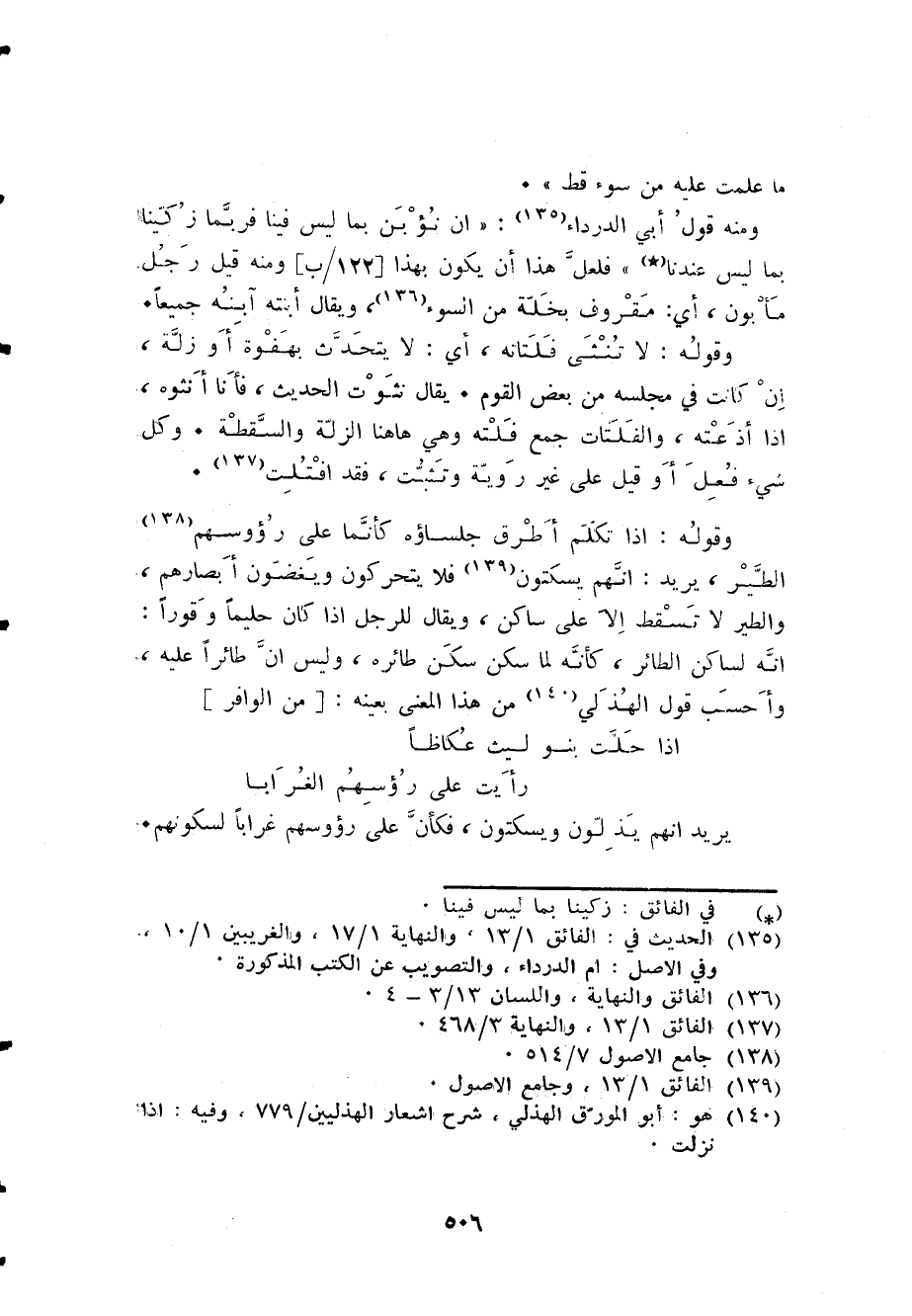 وَقَوله إِذا تكلم أطرق جُلَسَاؤُهُ كَأَنَّمَا على رؤوسهم الطير يُرِيد أَنهم يسكتون فَلَا يتحركون ويغضون أَبْصَارهم وَالطير لَا تسْقط إِلَّا على سَاكن وَيُقَال للرجل إِذا كَانَ حَلِيمًا وقورا أَنه لساكن الطَّائِر كَأَنَّهُ لما سكن سكن طَائِره وَلَيْسَ أَن طائرا عَلَيْهِ وأحسب قَول الْهُذلِيّ من هَذَا الْمَعْنى بِعَيْنِه [من الوافر] ... إِذا حلت بَنو لَيْث عكاظا ... رَأَيْت على رُؤْسهمْ الغرابا ...