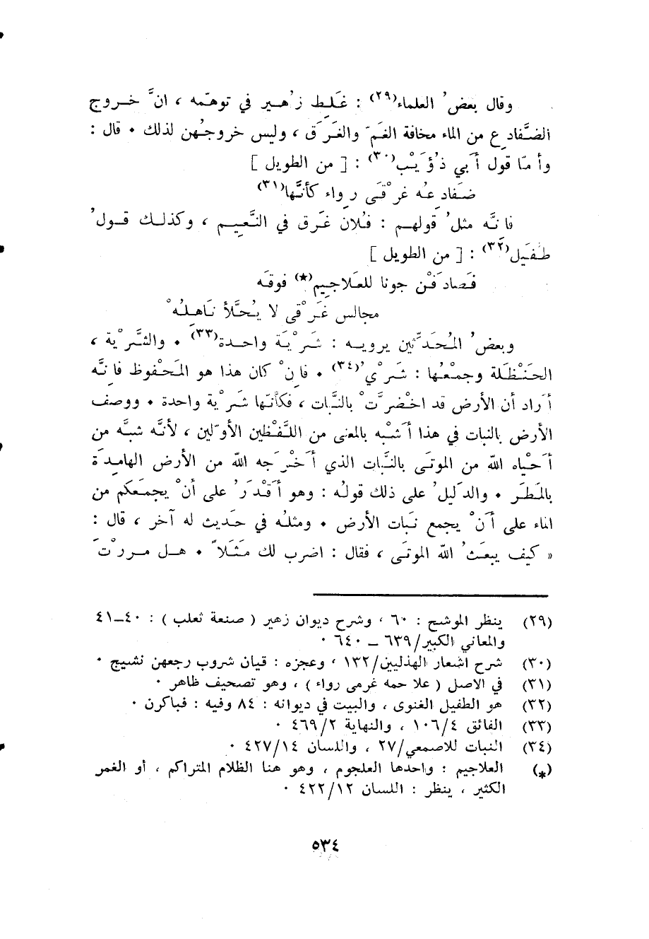 وَقَالَ بعض الْعلمَاء غلط زُهَيْر فِي توهمه أَن خُرُوج الضفادع من المَاء مَخَافَة الْغم وَالْغَرق وَلَيْسَ خروجهن لذَلِك قَالَ وَأما قَول أبي ذُؤَيْب [من الطَّوِيل] ... ضفادعه غرقى رواء كَأَنَّهَا ...