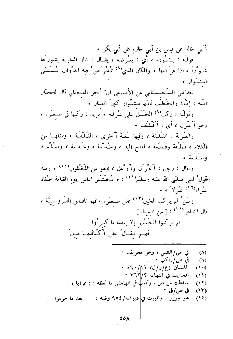 حَدثنِي السجسْتانِي عَن الْأَصْمَعِي أَن أبجر الْعجلِيّ قَالَ لحجار ابْنه إياك والخطب فَإِنَّهَا مشوار كثير العثار