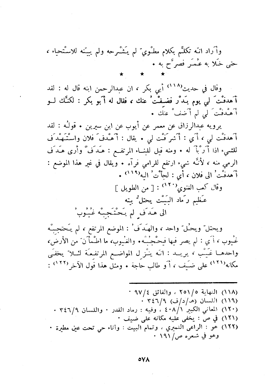 وَقَالَ كَعْب الغنوي [من الطَّوِيل] ... عَظِيم رماد الْبَيْت يحتل بَيته ... الى هدف لم يحتجبه غيوب ...