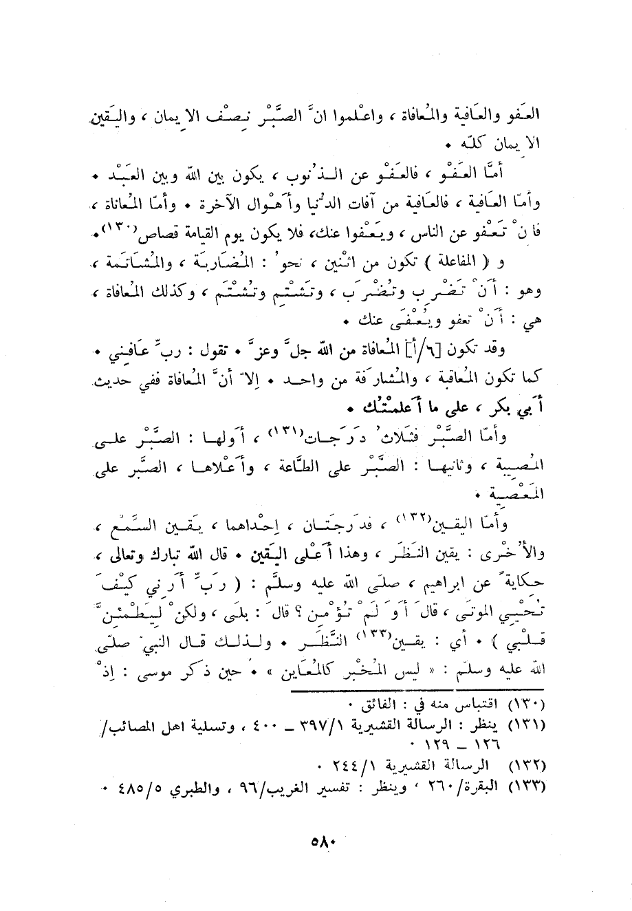 وَأما الصَّبْر فَثَلَاث دَرَجَات أَولهَا الصَّبْر على الْمُصِيبَة وَثَانِيها الصَّبْر على الطَّاعَة وأعلاها الصَّبْر على الْمعْصِيَة