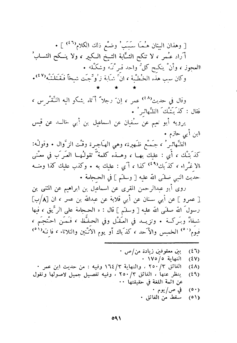 وَقَالَ فِي حَدِيث عمر إِن رجلا أَتَاهُ يشكو إِلَيْهِ النقرس فَقَالَ كذبتك الظهائر