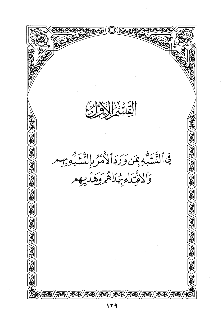 القِسْمُ الأَوَّلُ في التَّشَبُّهِ بمَن وَرَدَ الأَمْرُ بِالتَّشَبُّهِ بِهِم وَالاقْتِدَاءِ بِهُدَاهُم وَهَدْيِهِم
