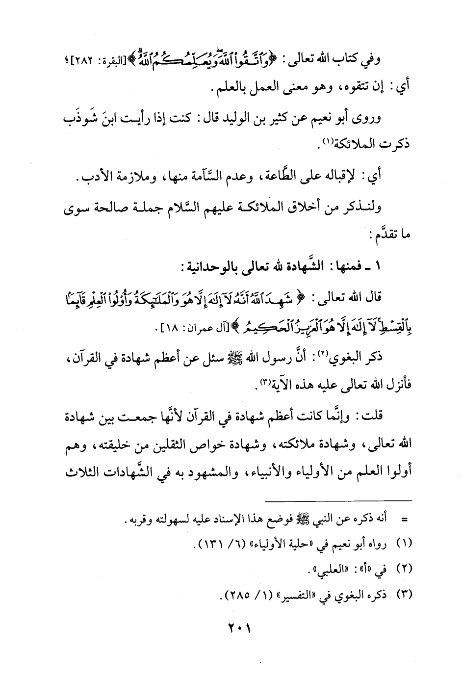 قال الله تعالى: {شَهِدَ اللَّهُ أَنَّهُ لَا إِلَهَ إِلَّا هُوَ وَالْمَلَائِكَةُ وَأُولُو الْعِلْمِ قَائِمًا بِالْقِسْطِ لَا إِلَهَ إِلَّا هُوَ الْعَزِيزُ الْحَكِيمُ} [آل عمران: 18].