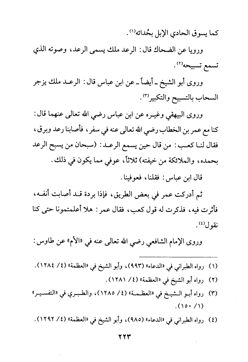 وروى أبو الشيخ -أيضًا - عن ابن عباس قال: الرعد ملك يزجر السحاب بالتسبيح والتكبير (¬3).