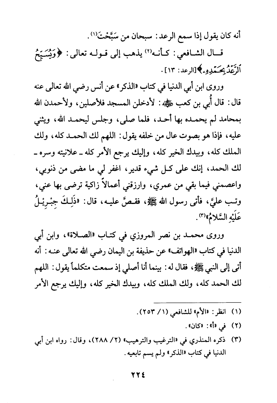 قال الشافعي: كأنه (¬2) يذهب إلى قوله تعالى: {وَيُسَبِّحُ الرَّعْدُ بِحَمْدِهِ} [الرعد: 13].