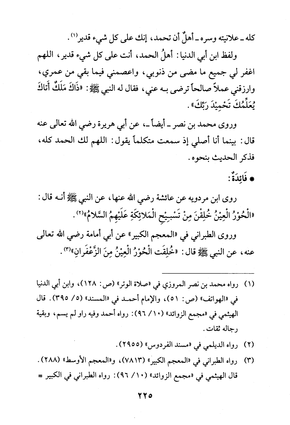ولفظ ابن أبي الدنيا: أهلُ الحمد، أنت على كل شيء قدير، اللهم اغفر لي جميع ما مضى من ذنوبي، واعصمني فيما بقي من عمري، وارزقني عملًا صالحًا ترضى به عني، فقال له النبي - صلى الله عليه وسلم -: "ذَاكَ مَلكٌ أَتاكَ يُعَلِّمُكَ تَحْمِيْدَ رَبِّكَ".