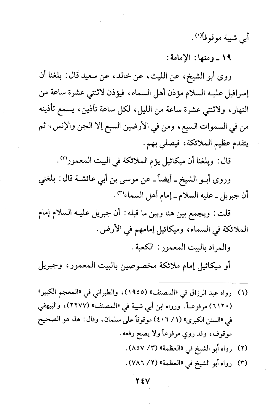 وروى أبو الشيخ -أيضًا - عن موسى بن أبي عائشة قال: بلغني أن جبريل -عليه السلام - إمام أهل السماء (¬3).