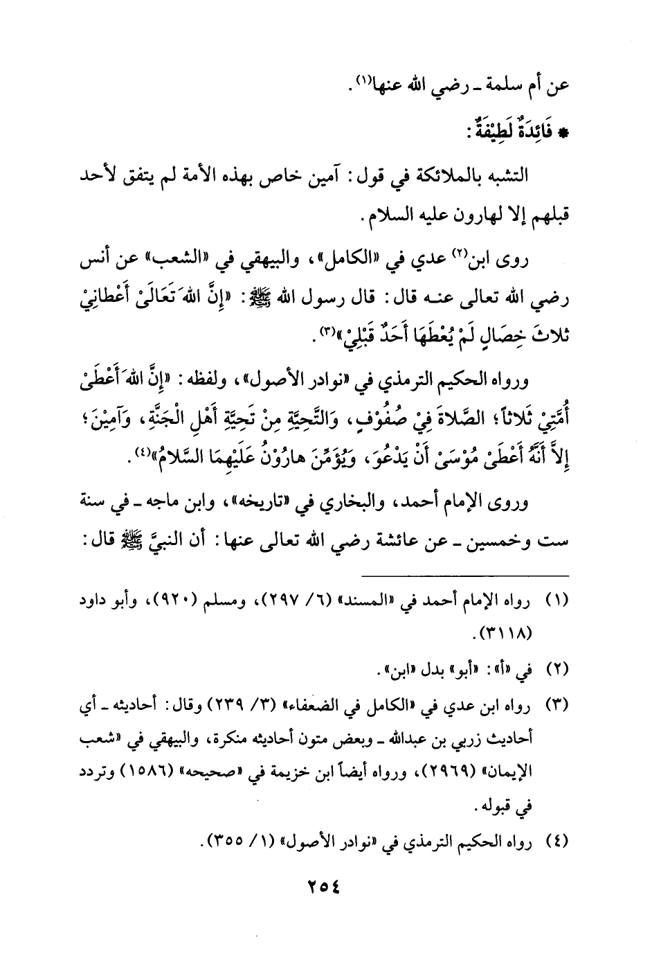 التشبه بالملائكة في قول: آمين خاص بهذه الأمة لم يتفق لأحد قبلهم إلا لهارون عليه السلام.