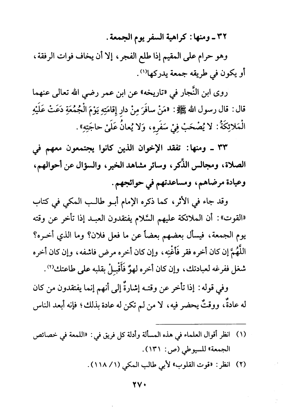 32 - ومنها: كراهية السفر يوم الجمعة.