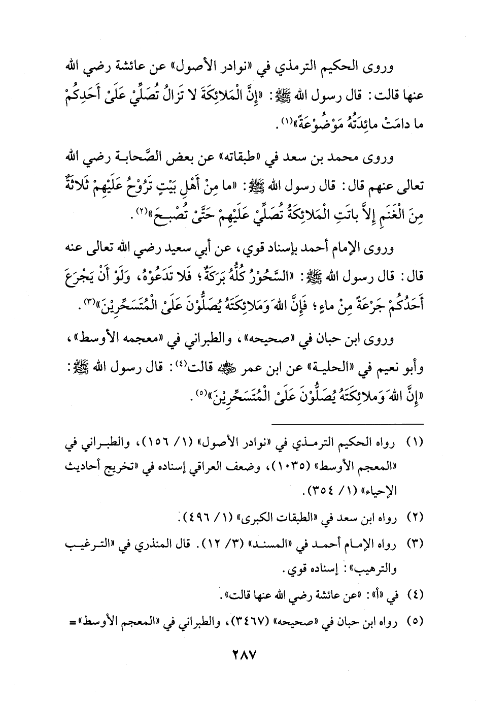 وروى ابن حبان في "صحيحه"، والطبراني في "معجمه الأوسط"، وأبو نعيم في "الحلية" عن ابن عمر - رضي الله عنه - قالت (¬4): قال رسول الله - صلى الله عليه وسلم -: "إِنَّ اللهَ وَملائِكَتَهُ يُصَلُّوْنَ عَلَىْ الْمُتَسَحِّرِيْنَ" (¬5).