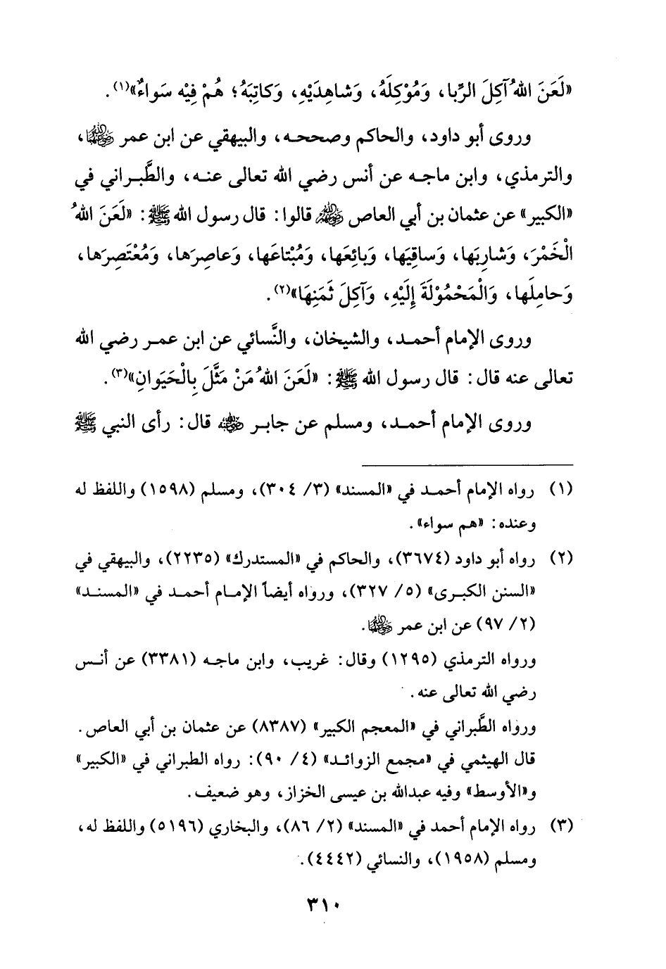 "لَعَنَ اللهُ آكِلَ الرَّبا، وَمُوْكِلَهُ، وَشاهِدَيْهِ، وَكاتِبَهُ؛ هُمْ فِيْه سَواءٌ" (¬1).