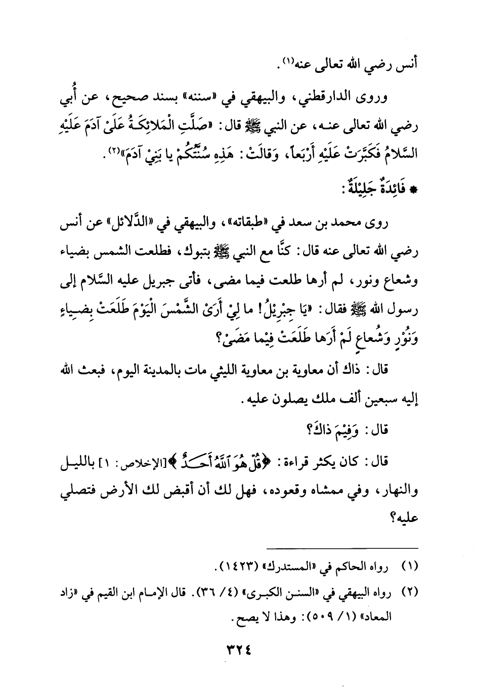 وروى الدارقطني، والبيهقي في "سننه" بسند صحيح، عن أُبي رضي الله تعالى عنه، عن النبي - صلى الله عليه وسلم - قال: "صَلَّتِ الْمَلائِكَةُ عَلَى آدَمَ عَلَيهِ السَّلامُ فَكَبَّرَتْ عَلَيْهِ أَرْبَعا، وَقالَتْ: هَذه سُنتكُمْ يا بَنِيْ آدَمَ" (¬2).