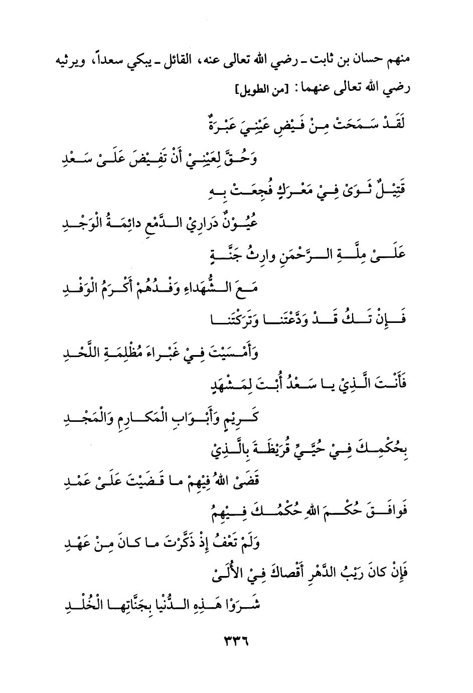 لَقَدْ سَمَحَتْ مِنْ فَيْضِ عَيْنيَ عَبْرَةٌ ... وَحُق لِعَيْنيْ أَنْ تَفِيْضَ عَلَىْ سَعْدِ