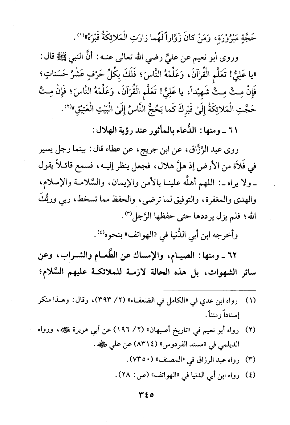 62 - ومنها: الصيام، والإمساك عن الطَّعام والشراب، وعن سائر الشهوات، بل هذه الحالة لازمة للملائكة عليهم السَّلام؛