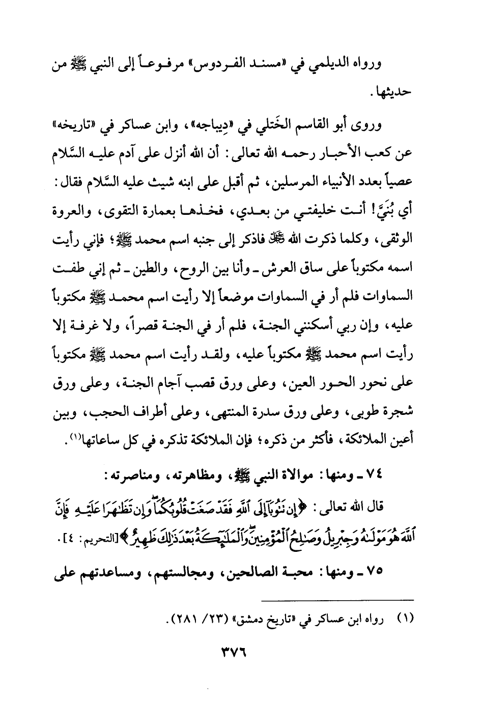 74 - ومنها: موالاة النبي - صلى الله عليه وسلم -، ومظاهرته، ومناصرته: