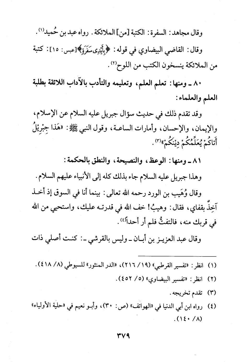 80 - ومنها: تعلم العلم، وتعليمه والتأدب بالآداب اللائقة بطلبة العلم والعلماء: