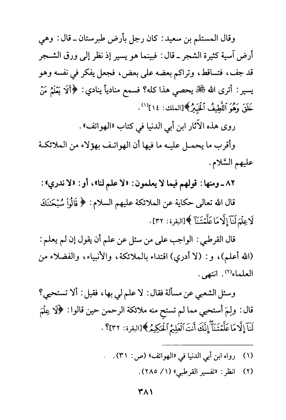 82 - ومنها: قولهم فيما لا يعلمون: "لا علم لنا"، أو: "لا ندري":