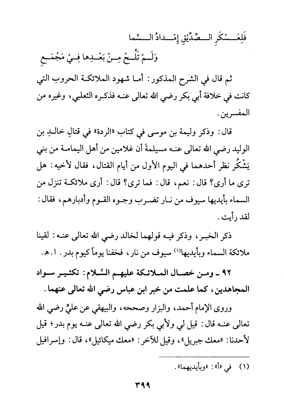 92 - ومن خصال الملائكة عليهم السَّلام: تكثير سواد المجاهدين، كما علمت من خبر ابن عباس رضي الله تعالى عنهما.