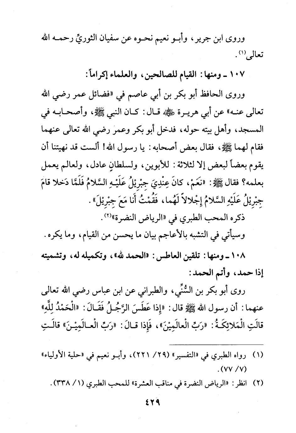 107 - ومنها: القيام للصالحين، والعلماء إكراماً: