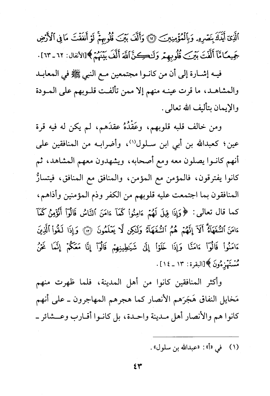 الَّذِي أَيَّدَكَ بِنَصْرِهِ وَبِالْمُؤْمِنِينَ (62) وَأَلَّفَ بَيْنَ قُلُوبِهِمْ لَوْ أَنْفَقْتَ مَا فِي الْأَرْضِ جَمِيعًا مَا أَلَّفْتَ بَيْنَ قُلُوبِهِمْ وَلَكِنَّ اللَّهَ أَلَّفَ بَيْنَهُمْ} [الأنفال: 62، 63].