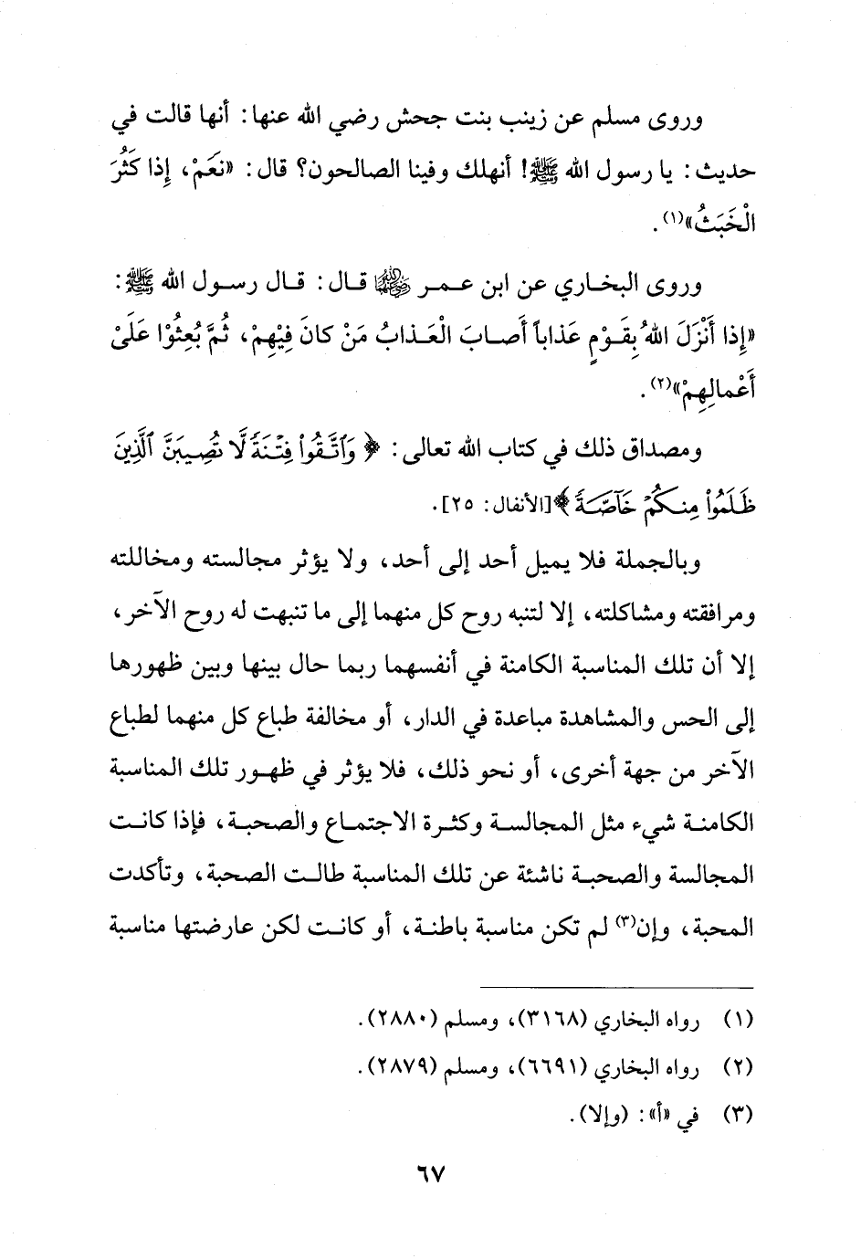 وروى مسلم عن زينب بنت جحش رضي الله عنها: أنها قالت في حديث: يا رسول الله - صلى الله عليه وسلم -! أنهلك وفينا الصالحون؟ قال: "نعمْ، إِذا كَثُرَ الْخَبَثُ" (¬1).