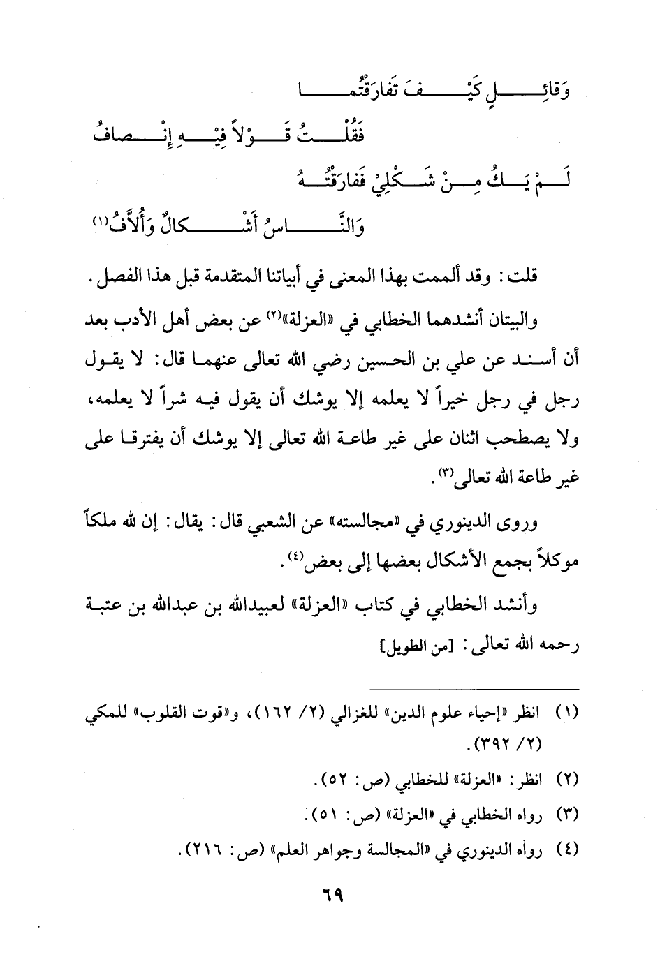 لَمْ يَكُ مِنْ شَكْلِيْ فَفارَقْتُهُ ... وَالنَّاسُ أَشْكالٌ وَأُلاَّفُ (¬1)