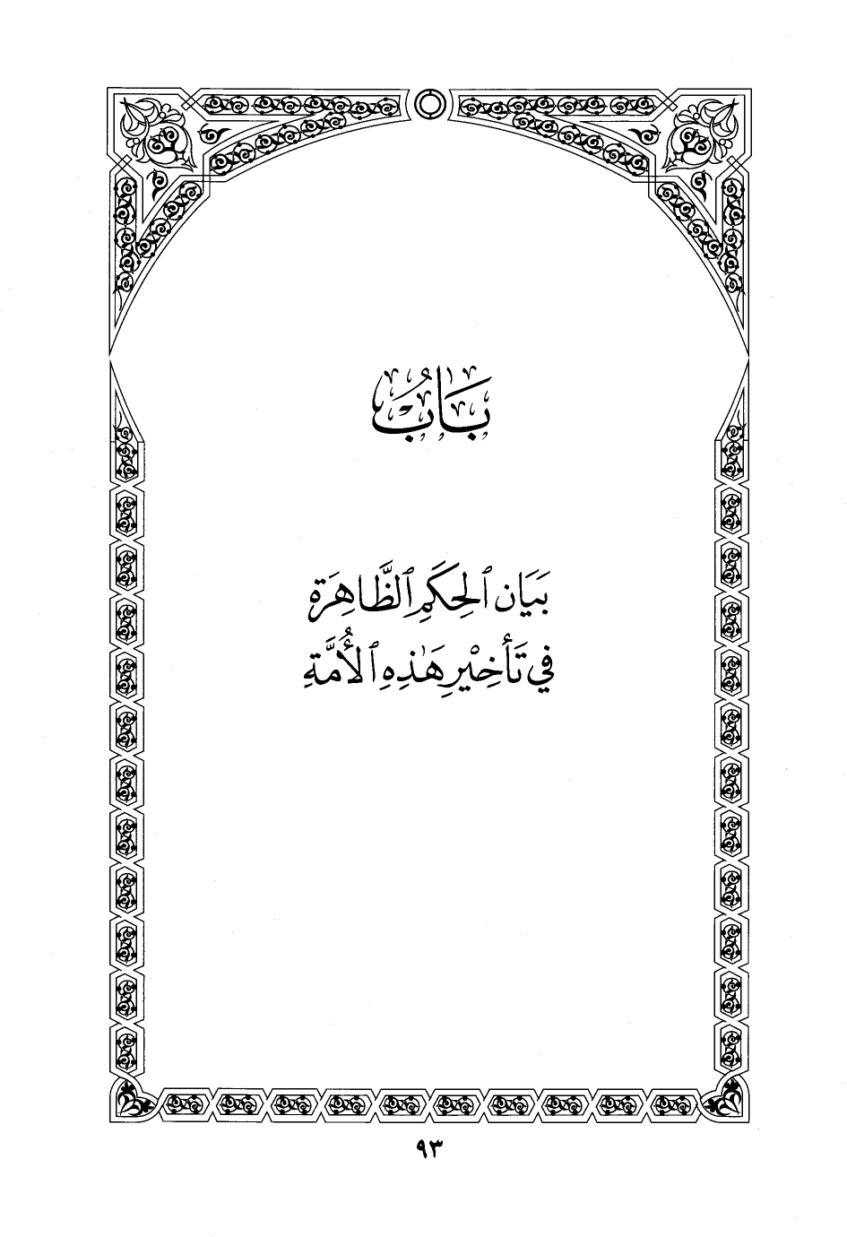 بَابُ بَيَان الحِكَمِ الظَّاهِرَة فِي تَأخِيرِ هَذِهِ الأُمَّةِ