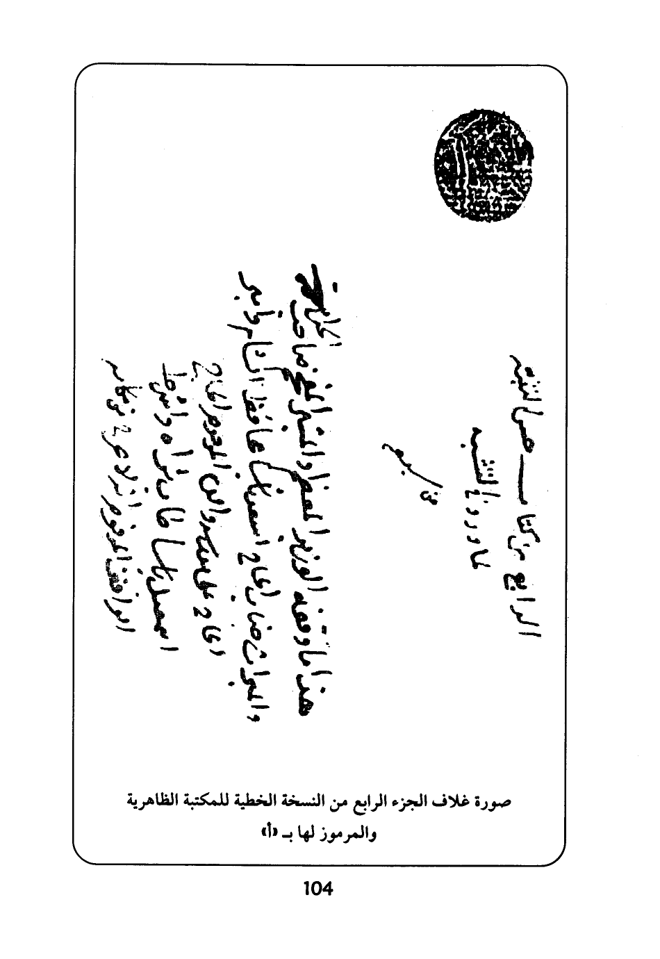 صورة غلاف الجزء الرابع من النسخة الخطية للمكتبة الظاهرية والمرموز لها بـ "أ"