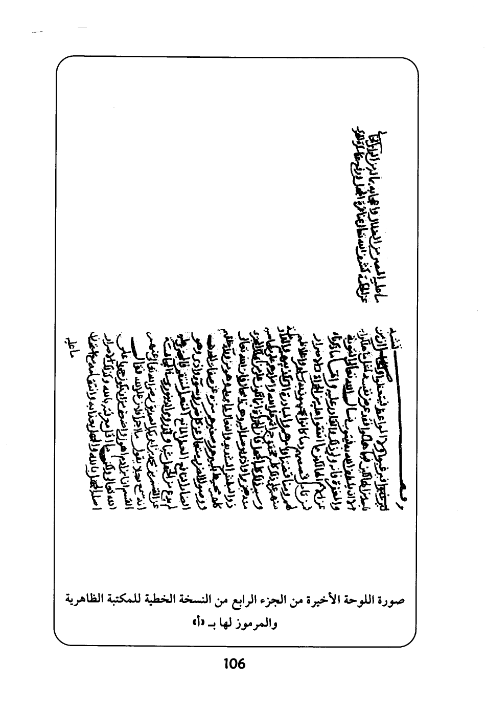 اللوحة الأخيرة من الجزء الرابع من النسخة الخطية للمكتبة الظاهرية والمرموز لها بـ "أ"