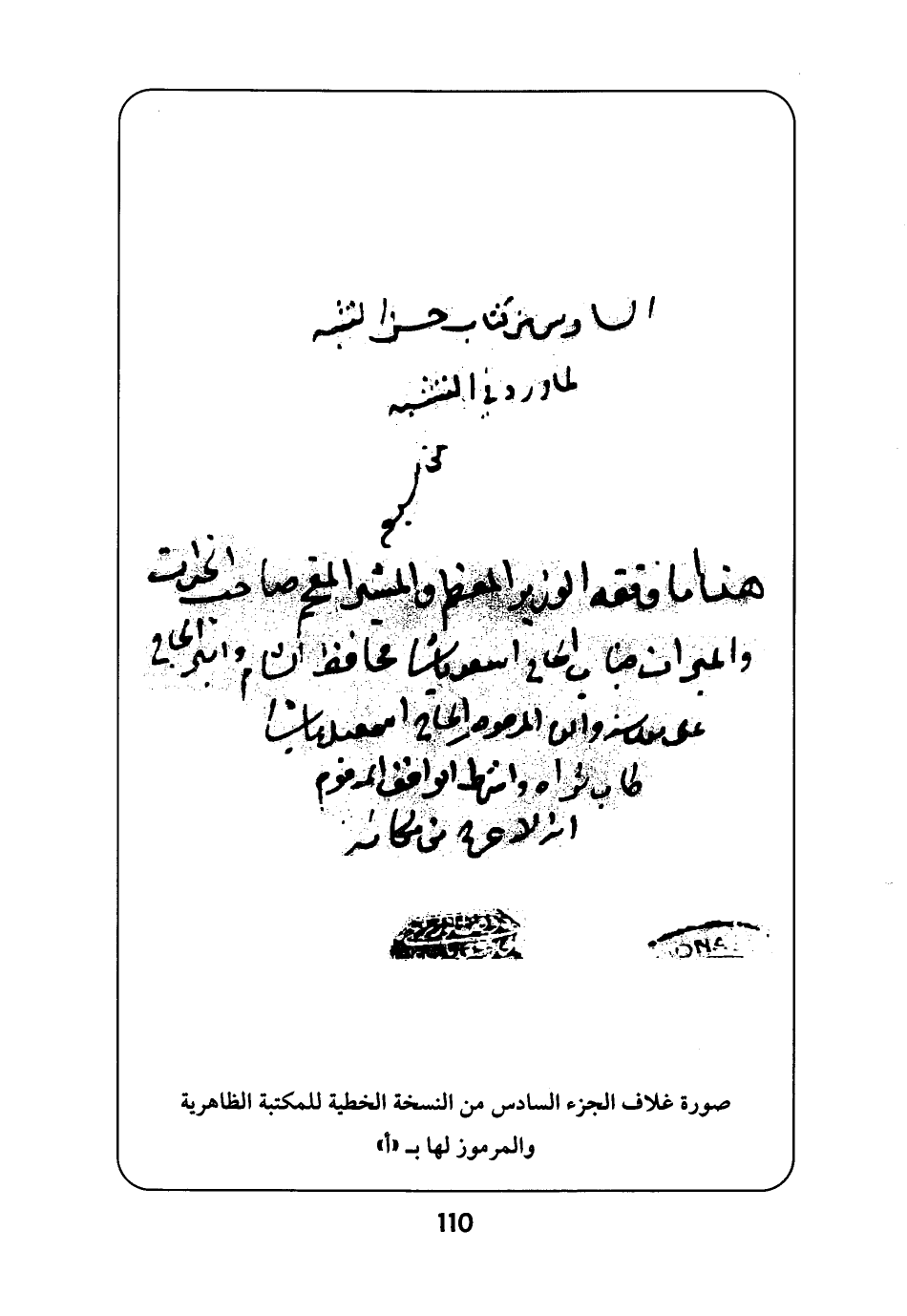 صورة غلاف الجزء السادس من النسخة الخطية للمكتبة الظاهرية والمرموز لها بـ "أ"