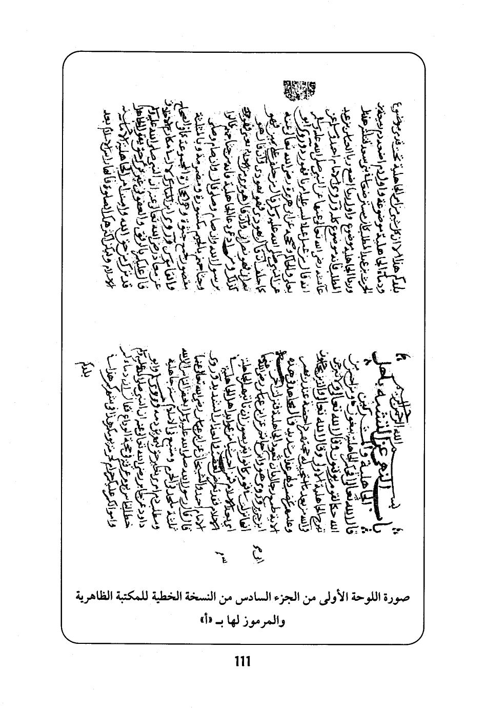 صورة اللوحة الأولى من الجزء السادس من النسخة الخطية للمكتبة الظاهرية والمرموز لها بـ "أ"