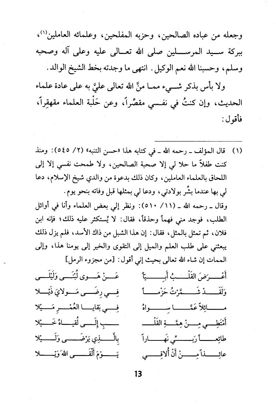 ولا بأس بذكر شيء مما منَّ الله تعالى عليَّ به على عادة علماء الحديث، دان كنتُ في نفسي مقصِّراً، وعن حَلْبة العلماء مقهقِراً، فأقول: