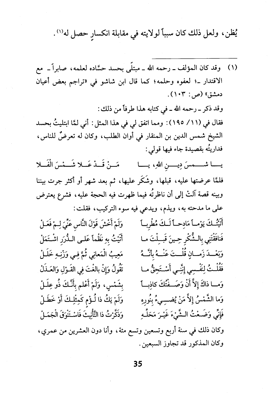 (¬1) وقد كان المؤلف - رحمه الله - مبتلًى بحسد حسَّاده لعلمه، صابراً - مع الاقتدار -؛ لعفوه وحلمه؛ كما قال ابن شاشو في "تراجم بعض أعيان دمشق" (ص: 103).