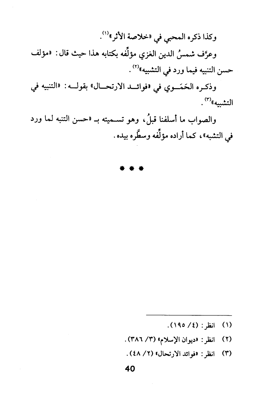 وذكره الحَمَوي في "فوائد الارتحال" بقوله: "التنبيه في التشبيه" (¬3).