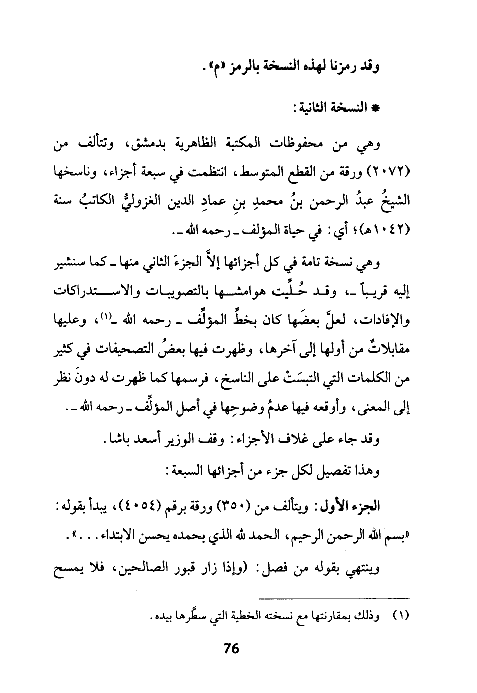 (¬1) وذلك بمقارنتها مع نسخته الخطية التي سطَّرها بيده.