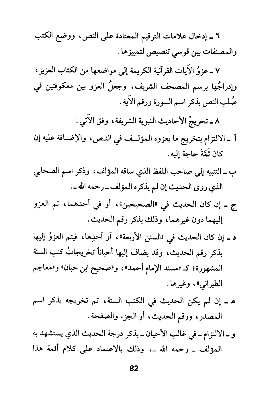 8 - تخريجُ الأحاديث النبوية الشريفة، وفق الآتي: